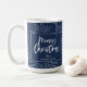 Blau-weiße Schrift frohe Weihnachten Kaffeetasse