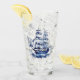 Blau-weiße Segelschiffe im Delft-Stil im Meer Glas