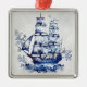 Blau-weiße Segelschiffe im Delft-Stil im Meer Ornament Aus Metall