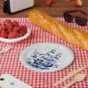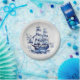 Blau-weiße Segelschiffe im Delft-Stil im Meer Pappteller
