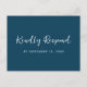 Elegante, schlichte, blau-weiße uAwg mit einer Auswahl an Speisen, klassische Kalligraphie-Skripte, die auf der Vorderseite "freundlich reagieren", und Menüoptionen mit Rücksendeadresse auf der Rückseite.