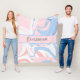 Auf dieser Fleecedecke ist ein blau-weiß-rosa Marmorwirbelmuster angebracht. Personalisieren Sie es mit Ihrem Namen oder Ihren Initialen.