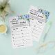 Blauer Blumen Wie alt war die Mama zu sein & der Vater zu sein? Baby Shower Spielkarte. Englisch und Spanisch Spiele in der Version inbegriffen (vorne und hinten). Fügen Sie der Vorlage für die deutsche und die spanische Version die Namen der Mama und des Vaters hinzu. Für weitere Anpassungen (Umformung, Hinzufügen oder Löschen der Anzahl von Fotos, Schriftart, Schriftart Stil ), klicken Sie auf Personalisieren, scrollen Sie nach unten und klicken Sie auf den Link "Klicken Sie, um weiter anzupassen". WIE MAN SPIELT: Zeigt Fotos der Mama & Vater-to-be an und nummeriert sie von 1 bis 5. Die Gäste schreiben ihre Schätzung für jedes Foto und die Person mit den besten Antworten gewinnt!