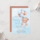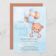Eine Babydusche "wir können frühzeitig warten" Einladung mit einem niedlichen Baby Teddy Bär und weichen pastellbraunen und blauen Ballons .