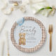 Feiern Sie stilvoll mit diesem Wir können kaum warten Teddy Bear Boy Baby Duschplatte von Porch & Gable Design. Mit einem süßen Aquarellbär mit blauem Ballon, Set gegen einen weichen, blauen Hintergrund auf einem schokoladenbraunen Gingham kariert. Dieser Teller ist die perfekte Mischung aus niedlich und klassisch. Mit individualisierbarem Text für den Babynamen und das Duschdatum fügt es Ihrem besonderen Tag eine persönliche Touch hinzu. Nutzen Sie diese personalisierten Baby-Dusche-Teller, um Essen und Desserts zu servieren, um Ihre Veranstaltung gemeinsam zu Krawatte zu bringen. Die Babydusche wurde so konzipiert, dass sie sich mit der kompletten "We Can Barely Wait Baby Shower Collection" abstimmen und sich wunderbar mit den entsprechenden Einladungen, Bechern, Servietten, Bannern und vielem mehr verbinden. So fühlt sich Ihr Baby-Duschbad nahtlos, festlich und unvergesslich.