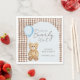 Feiern Sie Ihren kleinen Jungen mit der "We Can Bearly Wait Boy Baby Shower Napkin by Porch & Gable Design". Diese bezaubernde Serviette besticht durch den charakteristischen Teddy-Bär in Aquarellfarbe, der einen blauen Ballon hält, der von einem weichen Baby-Blue Bogen und einem schokoladenbraunen Gingham-karierten Hintergrund gerahmt ist. Sowohl der Name als auch das Veranstaltungsdatum sind vollständig anpassbar und machen diese Servietten zu einer persönlichen Touch für Ihr Party-Dekor. Diese Servietten sorgen nicht nur für einen stilvollen Akzent auf Ihrem Tischfußboden, sondern sorgen auch für einen angenehmen Aufenthalt. Pair sie mit koordinierenden Einladungen, Tellern, Loselschildern und Begrüßungstafeln aus der "We Can Bearly Wait Boy Baby Shower Collection" für ein perfekt abgestimmtes, einheitliches Aussehen. Diese Servietten sind mit niedlichen Teddybärenkunst, Aquarellfarben und individualisierbarem Text gestaltet und eignen sich ideal, um die Ankunft eines kleinen Jungen in einer Art und Weise zu feiern, die sowohl süß als auch unvergesslich ist.