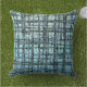 Blue X's und O's Pattern Black Karo Outdoor Pillow. künstlerisches Design mit Blues, Grau und Schwarz. Ein wunderschönes Innen- oder Außendekor für jeden, der einen eklektischen und urbanen Stil hat.