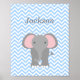 Blau Zickzack Elephant Personalisiertes Kinderzimm Poster