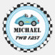 Blau Zwei schnelle Race Car Party Kreis Runder Aufkleber