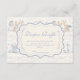 Ein süßes, vintage-inspiriertes Design mit zarten blauen Schleifen, weicher gestreifter Detaillierung und charmanten Blaubeergarten-Illustrationen. Toile-artige Kunstwerke mit niedlichen Tieren und Obstkörben schaffen ein klassisches Märchenbuch-Feeling in einer weichen, pulverbabylonischen Farbpalette. Der aufwendige zentrale Rahmen fügt Eleganz hinzu, während er den Gesamteindruck leicht, verfeinert und zeitlos hält. Perfekt für eine Babyparty mit einem sanften Gartenthema und einem Hauch von traditionellem Charme.