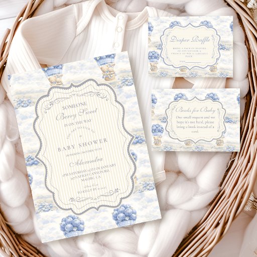Blaubeer-Heißluftballon Toile Baby-Party Einladung