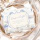Ein süßes, vintage-inspiriertes Design mit zarten blauen Schleifen, dezenter Streifenoptik und charmanten Blaubeergarten-Illustrationen. Toile-artige Kunstwerke mit niedlichen Tieren und Obstkörben schaffen ein klassisches Märchenbuch-Feeling in einer weichen, pulverblicken Farbpalette. Der aufwendige zentrale Rahmen verleiht Eleganz, während er den Gesamteindruck leicht, raffiniert und zeitlos hält. Perfekt für eine Babyparty mit einem sanften Gartenthema und einem Hauch von traditionellem Charme.