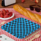 Blau-schwarzes Schachbrettmuster mit gleichmäßig verteilten Quadraten. Das Bild vermittelt ein Gefühl von Ordnung und Symmetrie mit einem lebendigen Farbkontrast.