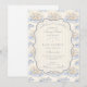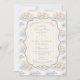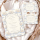 Ein süßes, vintage-inspiriertes Design mit zarten blauen Schleifen, weicher gestreifter Verzierung und charmanten Blaubeergarten-Illustrationen. Toile-artige Kunstwerke mit niedlichen Tieren und Obstkörben schaffen ein klassisches Märchenbuch-Feeling in einer weichen Pulverblau-Palette. Der aufwendige zentrale Rahmen fügt Eleganz hinzu, während er den Gesamteindruck leicht, verfeinert und zeitlos hält. Perfekt für eine Babyparty mit einem sanften Gartenthema und einem Hauch von traditionellem Charme.