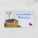 Diese Visitenkarte auf einem blauen Hintergrund der Steigung stellt den Sommer-Wiesen-Blaubeerbauernhof dar. Ein gesponnener Korb, der mit Blaubeeren überläuft, ist auf der Front zusammen mit dekorativen rosa und lila Schmetterlingen. Die Rückseite hat den ganzen wichtigen Text ein Brunnen als mehr Schmetterlinge. Aller Text kann besonders angefertigt werden, um Ihr einzelnes Geschäft zu passen.