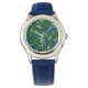 Kinderuhr aus Edelstahl mit blauem Lederarmband