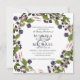 Elegantes Blatt, Äste und Beeren inspirierte Hochzeitseinladungs-Design mit einem zarten Heidelbeeren und Himbeeren-Set auf weißem Hintergrund, das Ihre Namen und Hochzeitsdetails freigibt. Die Karten kehren zu einem soliden koordinierten lila Ein modernes und elegantes Design für elegante Hochzeiten im Herbst oder Winter.