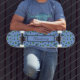 Farbenfrohe Muster mit lila Wildbeere auf Skateboard gedruckt. Text ist anpassbar!