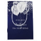 Eine Geschenktasche für einen gmädchenhaften und glamourösen 21. Geburtstag (oder jedes Alter). Marineblau mit Glitzern aus Glitzer und weißen Ballons. Die blaue Farbe ist ungleichmäßig. Personalisieren und fügen Sie ein Datum, Name und Alter 21. Der Text: Der Name ist weiß geschrieben mit einem modernen handgeschriebenen Schrift