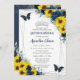 Blaublauer Sonnenblumenschmetterling Quinceañera Einladung