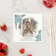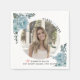 Blaublütenklasse 2022 Abschluss Foto Papierservietten. Ein hübsches Design, das ein Foto, staubblaue Aquarellfarben-Blume in den oberen links und unteren rechten Ecken zeigt, den Text "Class of 2022" und einen rosa Graduierungsdeckel.