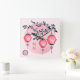 Blaublütenlaternen "Aufsteigen" asiatisches Design Quadratische Wanduhr