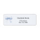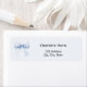 Ein hellblauer Hintergrund mit einem großen Bogen. Personalisieren Sie Ihren Namen und Ihre Adresse und fügen Sie diese hinzu. Schwarze Buchstaben.