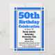 Senden Sie Einladungen zu einer 50. Geburtstagsfeier mit dieser 50. Blauen Einladung zum Geburtstag. Es kann mit Ihren persönlichen Daten angepasst werden.