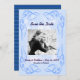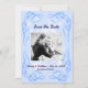 Blauer Abstrakter Swirl Border Save the Date Flachkarte mit gerahmten Wirbel an Ecken. Der Rücken hat ein gestreiftes Muster mit der dunkelblauen Farbe Pantone Lapis. Drehen Sie es um einen anderen Effekt. Konvertieren Sie dies für jeden Anlass. Fügen Sie ein Foto hinzu und/oder ändern Sie den Text. Das Blau ist nah zu Niagara Blue beliebt für dieses Jahr.
