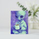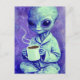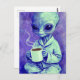 Blaue Alien mit einer Tasse Kaffee Postkarte