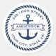 Elegante, weiße oder farbige nautische Rücksendeadressen-Aufkleber mit einem dunkelblauen Anker mit einem Banner in einem runden Seilrahmen und Ihre Rücksendeadresse in einem modernen Schriftart. Alle Farben sind anpassbar.