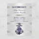 Blaue Ankersilber, weißes Navy Circle Monogram 33 Ankündigungspostkarte