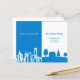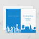 Eine elegante und minimalistische, sich bewegende Ankündigungskarte vom Stadtleben zum ländlichen Leben. Blau und weiß mit City Skyline und Country Zuhause. Personalisieren und fügen Sie Ihre neue Adresse und Nachricht zu Ihrer Familie und Ihren Freunden.