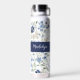 Blaue Aquarell-Monogramm-Wildblume Name Trinkflasche