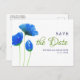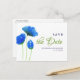 Blaue Aquarell-Blume Save the Date Karte. Elegante moderne Wahl für botanische Hochzeiten im Sommer. Teil einer Hochzeitskollektion.