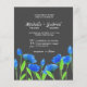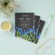 Blaue moderne Aquarellfarben-Wildblumen. Stilvolle Hochzeit. Floral elegante schwarze Budget Einladung. Trendy Wahl für Hochzeiten im Sommer.