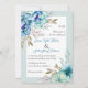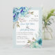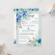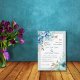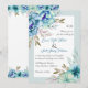 Blaue Aquarellfarben Blume Blütenminze grüne Hochzeitseinladung. Die Blume sind in blau und mint grün gehalten, während der Text in einem weißen Rahmen mit einem Rand platziert ist. Auf der Rückseite befinden sich Blumengärten im oberen und unteren Teil.