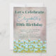Diese blaue Aquarell-Blume rustikalen Hintergrund Geburtstagsfeier Einladung ist für Sie bereit, zu personalisieren. Genau richtig für ein Teenager. Fett aquamarine und elegante blaue Schrift auf einem rustikalen lila, rosa und aquamarinen rustikalen Hintergrund.