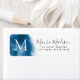 Elegante Rücksendeadressen-Aufkleber mit dem Monogramm-Initial auf einem dunkelblauen Aquarellhintergrund. Vorlagenfelder für Namen und Adresse.