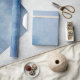 Dieses wunderschöne Papier zeigt ein Bild einer Aquarellmalerei (oder, in britischem Englisch, Aquarellmalerei). Die Leinwand ist schlicht und blau gehalten, wodurch sie eine elegante, künstlerische und entspannende Wirkung hat. Es ist vielleicht eine Anspielung auf einen schönen Himmel, der von weißen Wolken übersät ist.