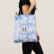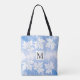 Moderne blaue Aquarellwäsche, Ahorn-Blätter und Monogramm Totbeutel. Es zeigt die Ränder von weißen Ahorn-Blätter auf blauem Aquarell und Ihr Monogramm in einem Rahmen mit Kontur in der Mitte platziert.