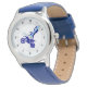 Kinderuhr aus Edelstahl mit blauem Lederarmband