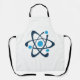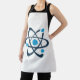 Blaue Atom-Wissenschaftsdesign-Schürze mit anpassbarem Text und Hintergrundfarbe.