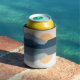 Abstrakte farbenfrohe Abbildung des Sonnenaufgangs mit blauen Bergen, die sich im See widerspiegeln