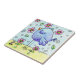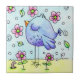 Whimsikale Aquarellmalerei eines niedlichen blauen Vogels umgeben von hübschen rosa Blume und grünen Blätter.