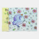 Whimsikale Aquarellmalerei eines niedlichen blauen Vogels umgeben von hübschen rosa Blume und grünen Blätter.