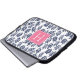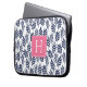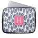 Blaue Blätter und rosa Monogramm Laptopschutzhülle
