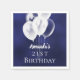 Eine Serviette für eine mädchenhafte und glamouröse 21. Geburtstagsparty (oder jedes Alter). Ein marineblauer blauer Hintergrund mit weißen Ballons. Die blaue Farbe ist ungleichmäßig. Personalisieren und fügen Sie einen Namen und Alter 21. Weiße Buchstaben.
