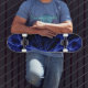 Blue Lightning Strike Skateboard mit schwarzem Hintergrund und außergewöhnlichem Effekt.