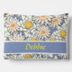 Weiße Blume auf blau, fügen Sie Ihren Namen hinzu.
